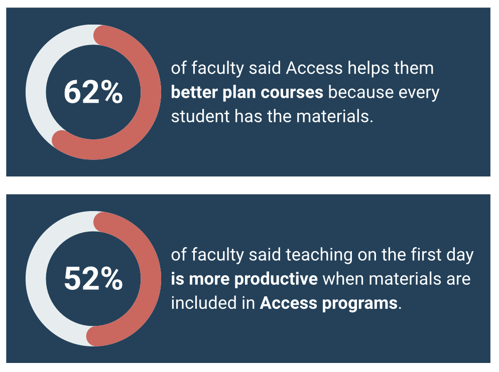 Access programs ensure course materials are delivered automatically, often through the Learning Management System, on or before the first day of class. The process is simple. The experience is consistent. And the academic impact adds up quickly.